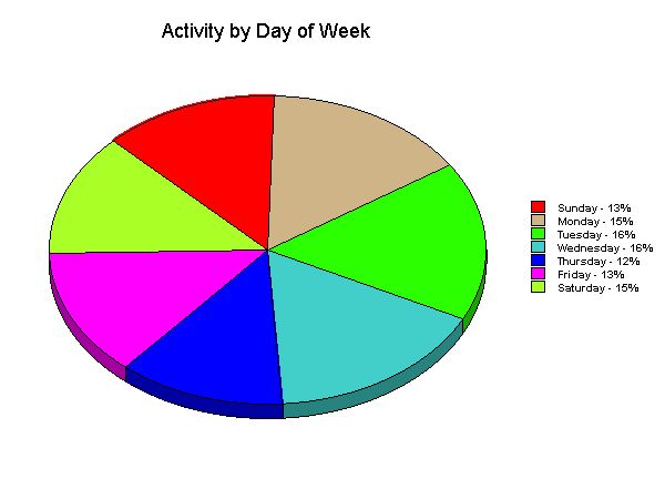 | Day | Requests | %Requests | Avg. Requests | Size (KB) | %Size | Avg. Size | Visits | %Visits |