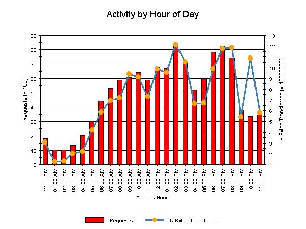 | Hour of Day | Requests | %Requests | Avg. Requests | Size (KB) | %Size | Avg. Size |